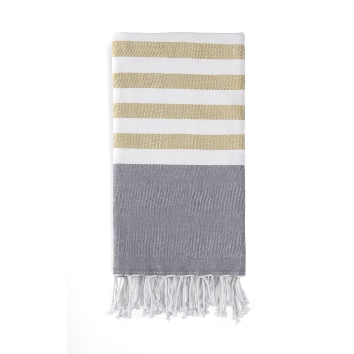 Deze stijlvolle hamamdoek met streepmotief is gemaakt van 100% katoen is heerlijk licht en heeft een royale afmeting. De doek is ideaal voor de sauna of om mee te nemen naar het strand. De verfijnde herringbone structuur geeft de fouta een unieke uitstraling. Uitgevoerd in natuurlijk materiaal van optimale kwaliteit heerlijk licht maar super stevig. De fouta is afgewerkt met franjes die je helemaal aan het zomerseizoen doet denken. 100% katoen. 100x180 cm