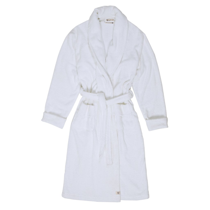 Omhul jezelf in de heerlijk zachte Home Robe. Deze unisex badjas is van een mooie zware kwaliteit (450 g/m²) en heerlijk zacht. Dankzij het ademende karakter kan deze jas het hele jaar door gedragen worden. Met 2 steekzakken een sjaalkraag en een ceintuur door 2 lussen is dit de ideale badjas. Leuk detail; de omslag van de mouwen.